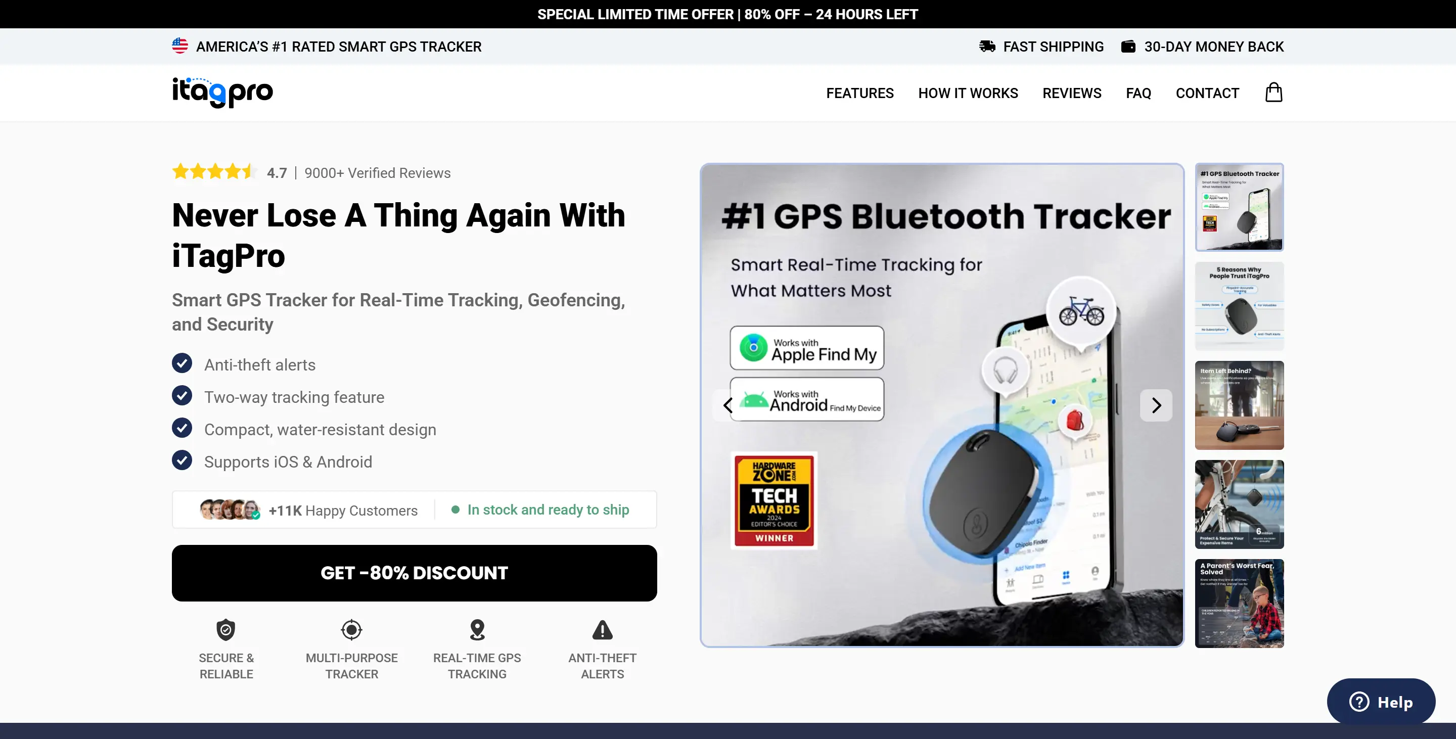 iTagPro™ is marketed as a smart tracker designed for real-time location tracking, geofencing alerts, and anti-theft notifications. For the latest bundles, shipping timelines, and the full feature list, use the official site link below.